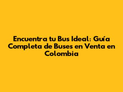 Encuentra Tu Bus Ideal: Guía Completa De Buses En Venta En Colombia