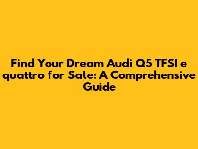 Hey there, car enthusiasts! Are you guys on the hunt for a stylish, eco-conscious, and performance-driven SUV? Look no further! The Audi Q5 TFSI e quattro is here to make your driving dreams a reality. This guide is your ultimate companion to find the perfect Audi Q5 TFSI e quattro for sale, covering everything from understanding its features to securing the best deals. So, buckle up, and let's dive in!