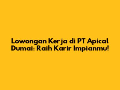 Hey guys! Siapa nih yang lagi nyari lowongan kerja? Kabar baik buat kalian semua, terutama yang berdomisili di sekitar Dumai! PT Apical Dumai, salah satu perusahaan terkemuka di bidang pengolahan kelapa sawit, lagi buka banyak kesempatan menarik nih. Yuk, simak info lengkapnya di bawah ini!