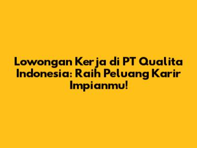 Guys, lagi cari lowongan kerja terbaru? Nah, ini dia kesempatan emas buat kalian! PT Qualita Indonesia, perusahaan bonafit yang bergerak di bidang [sebutkan bidangnya], lagi buka banyak lowongan menarik nih. Yuk, simak terus artikel ini buat tahu posisi apa aja yang lagi dicari, kualifikasinya, dan cara daftarnya!