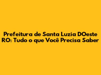 Santa Luzia D'Oeste RO: Guia Completo Da Prefeitura